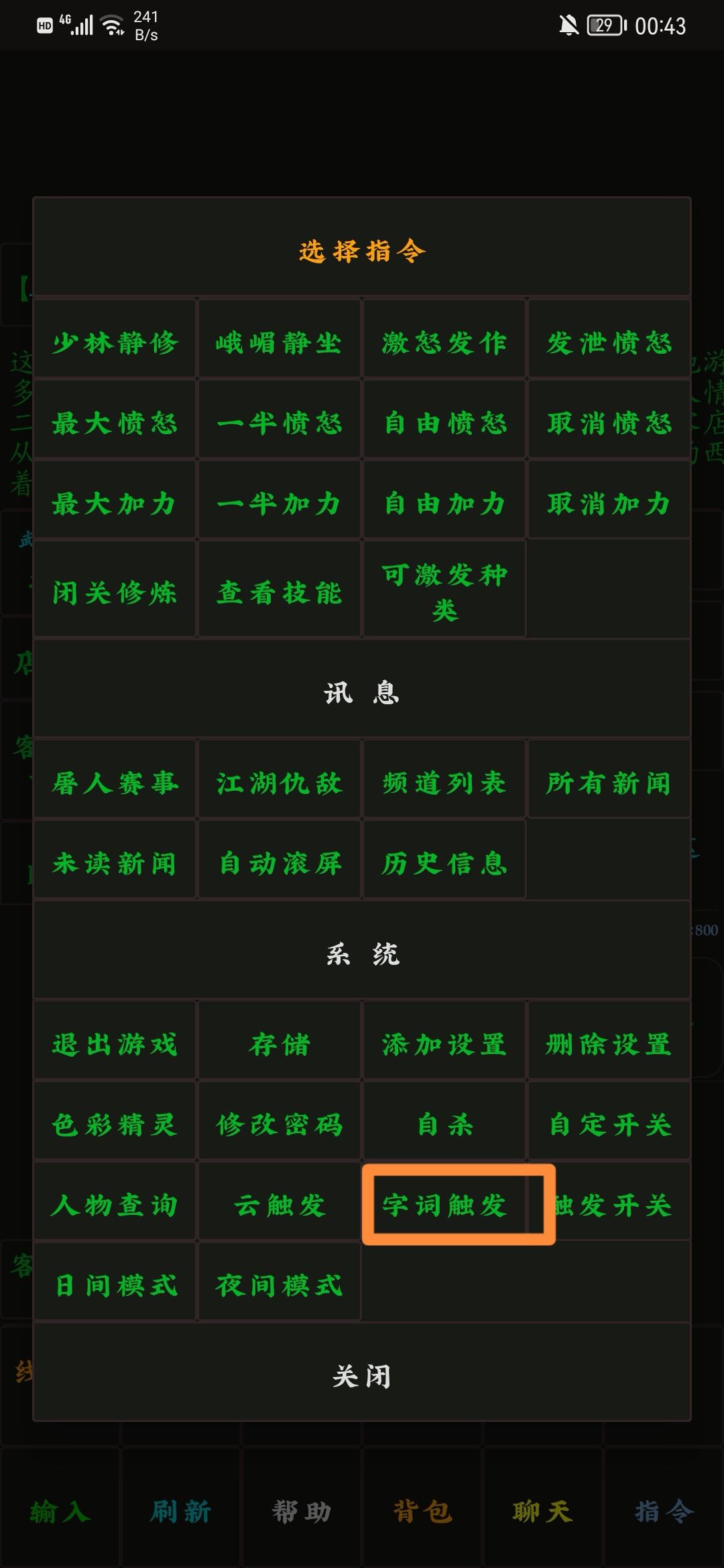 我们需要明白的是,字词触发肯定是需要字词的。字词从哪来呢,还记得我们刚才学习技能时,运行的那一条指令的描述吗?