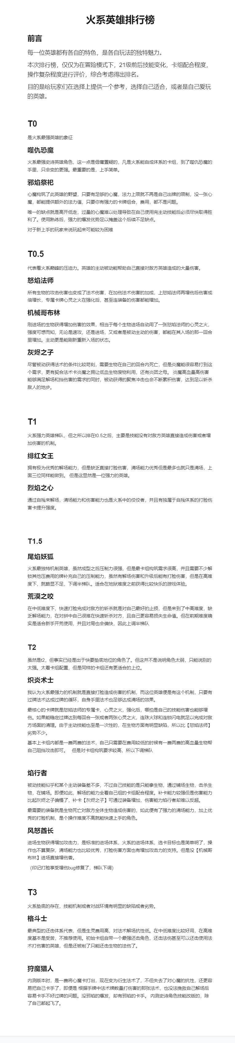 【腾讯文档】火系英雄梯队-【恶魔秘境】攻略组