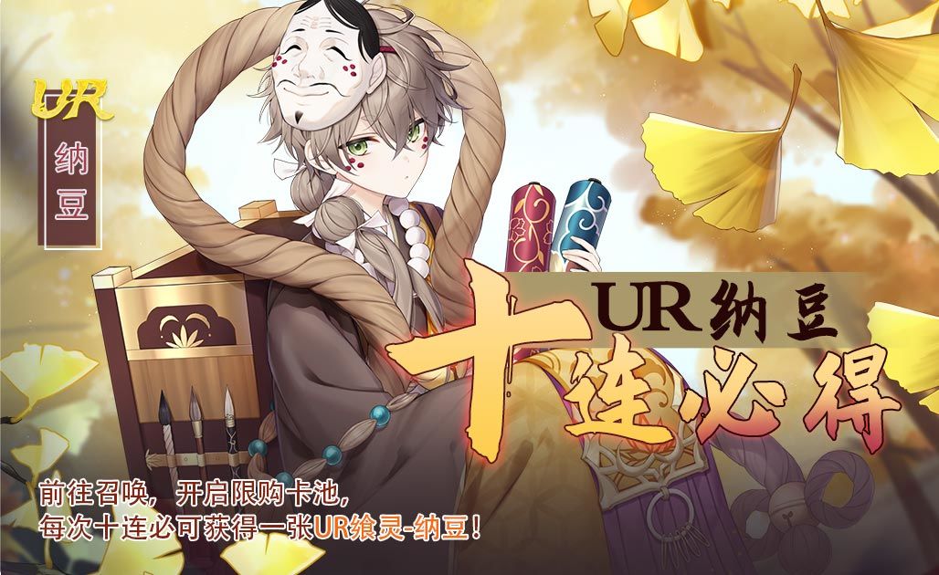 活动描述:活动期间,开启限购卡池,御侍大人可在商城界面使用幻晶石等道具兑换卡池专属道具,该卡池中UR飨灵-纳豆将重返缇尔菈大陆。