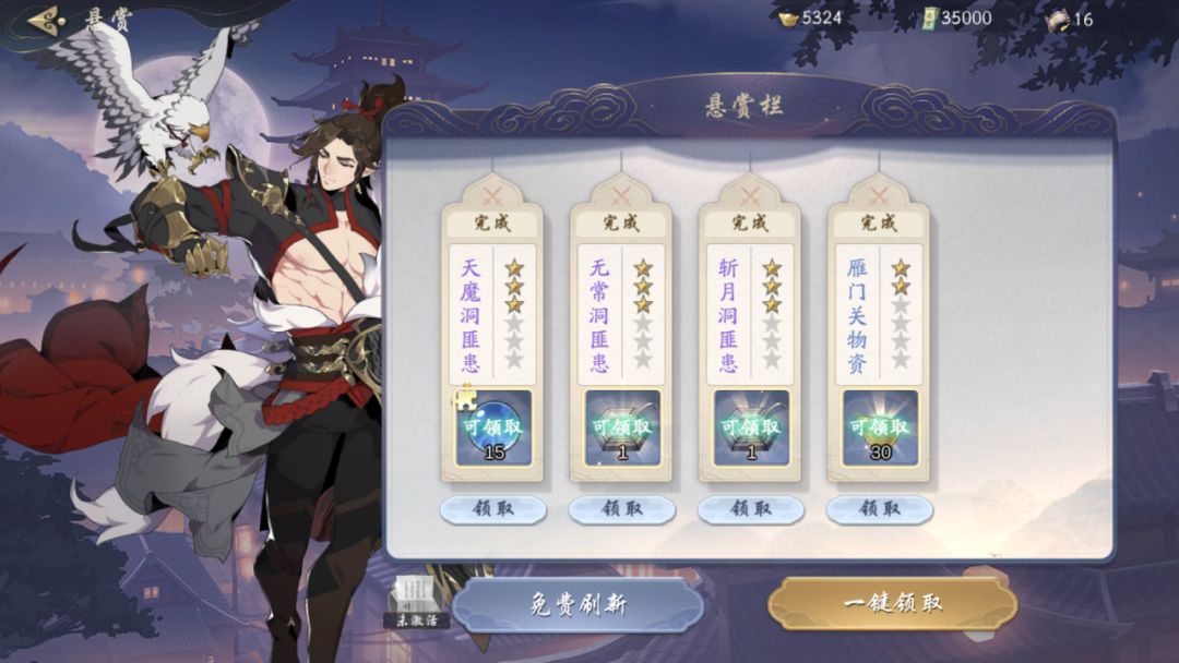 悬赏是一个通过派遣侠客执行任务获得奖励的玩法。小二推荐用元宝或者刷新券首刷或者三刷来获得高星级的悬赏任务。毕竟低级任务和高级任务所消耗的悬赏令几乎无差别,而高级悬赏任务的奖励则可观很多~
