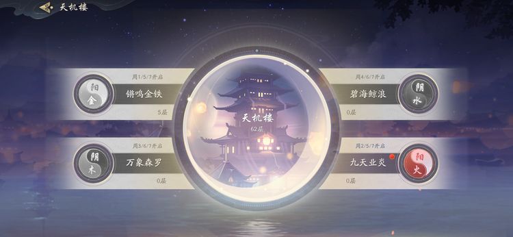 天机楼是一个爬塔玩法,和推图同理,受到战斗力制约。刷塔能获得不菲的养成资源奖励,并且每到达一定的层数还可以获得相应的额外奖励。天机楼分为属性楼和天机楼两种,属性楼每天只有十次机会,并且每天开放的属性不同;而天机楼只要战力足够就可以一直推进,小二建议每天把属性楼10次机会用完,直到卡关。