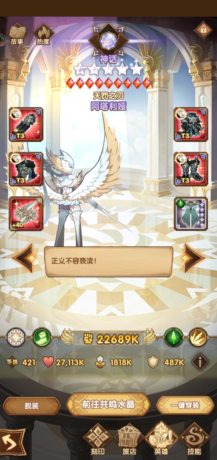 我是一名远征老玩家,第一张五星白卡是剑圣,第一张半神神话卡是天罚,推关,竞技场,团本的主力也是他俩。不为什么,就是要练到极致,因为热爱。