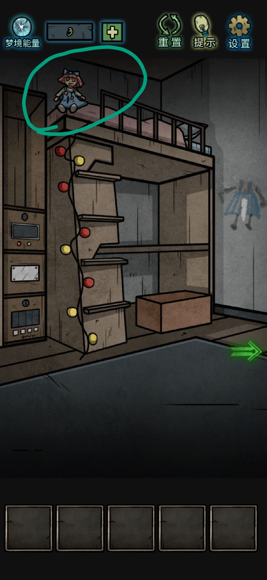 用钥匙打开柜子3号,按照伞的图案输入颜色(橙绿白蓝)打开柜子,得到硬币和瓶盖