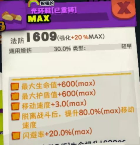 【光环鞋】重铸属性:插槽+3/通用增伤/暴击伤害,套装选择祝福套:+100%生命