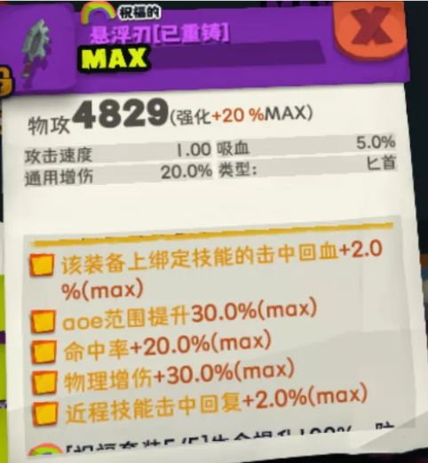 流派解析:血爆悬浮刃流派是通过悬浮刃击中回血,触发血爆头的技能来打伤害(击中回血或吸血累计血池:自身HP的30%,超过上限对敌方造成物理伤害),一个通过头盔打伤害的流派,所以实践中武器悬浮刃的伤害可忽略不计,后期悬浮刃的伤害也基本上是0,所以根据血爆头的技能描述可得:血量越高则伤害越高。