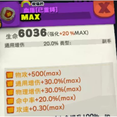 【血盾】重铸属性:第二附魔/通用增伤/暴击伤害,套装选择祝福套:+100%生命