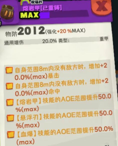 【熔岩甲】重铸属性:插槽+3/通用增伤/暴击伤害,套装选择祝福套:+100%生命