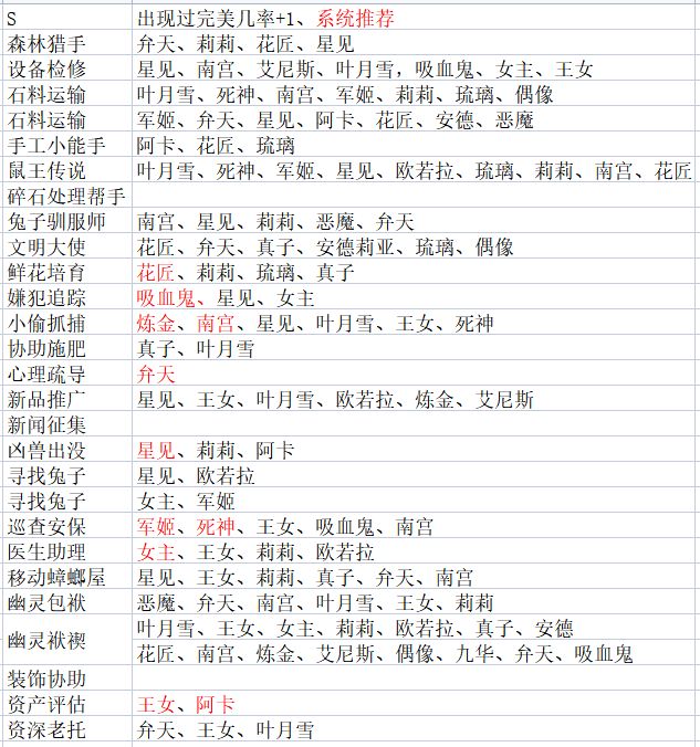 派遣完美概率+1角色记录表