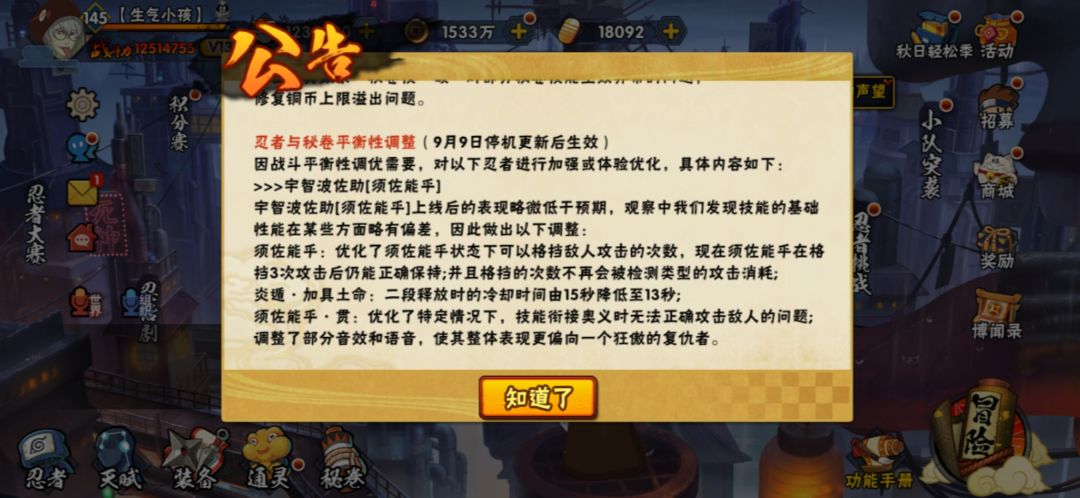 PS:因为娱乐忍者改动的比较多,但对环境影响微乎其微,于是我本次就不讨论那些娱乐忍者的改动了,都是增强,对无差别玩家的体验将会提高。