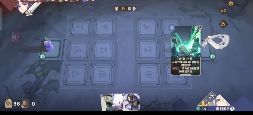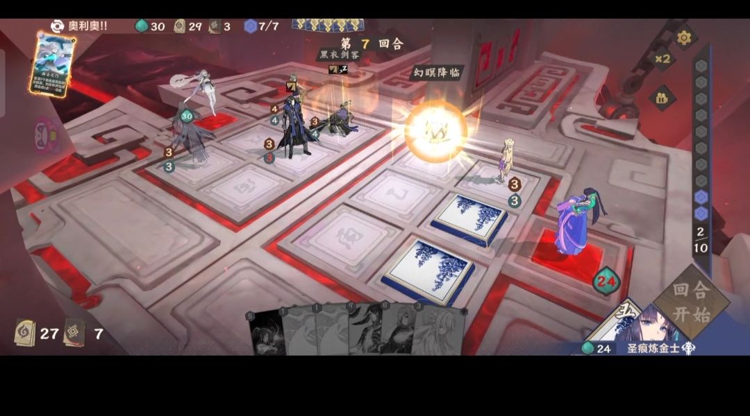 五回合幽莲放置一张黑衣日常站牌,梦璃空过一回合隐忍待发。
