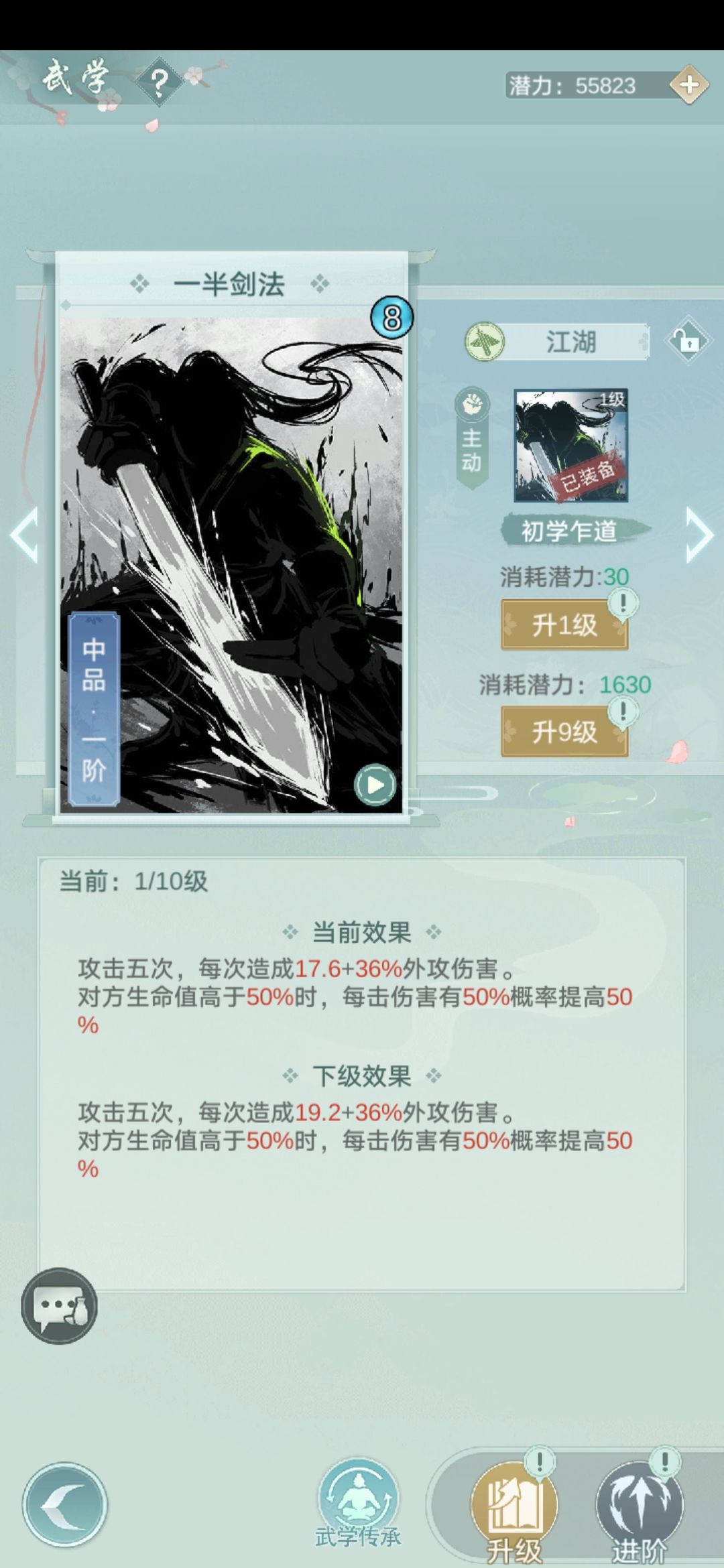可将一半剑法换成4剑意的内攻武学,变成一个纯内功流派,想研究的小伙伴可自行研究,没有特殊绝学,我也没办法试强度,大家就云一云,娱乐就好