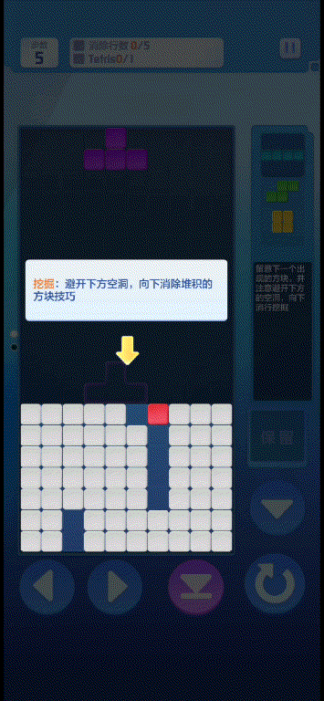 在消行的同时,避免挡住下方的空洞就可以快速向下挖掘,可以在降低方块高度的同时反击对手。