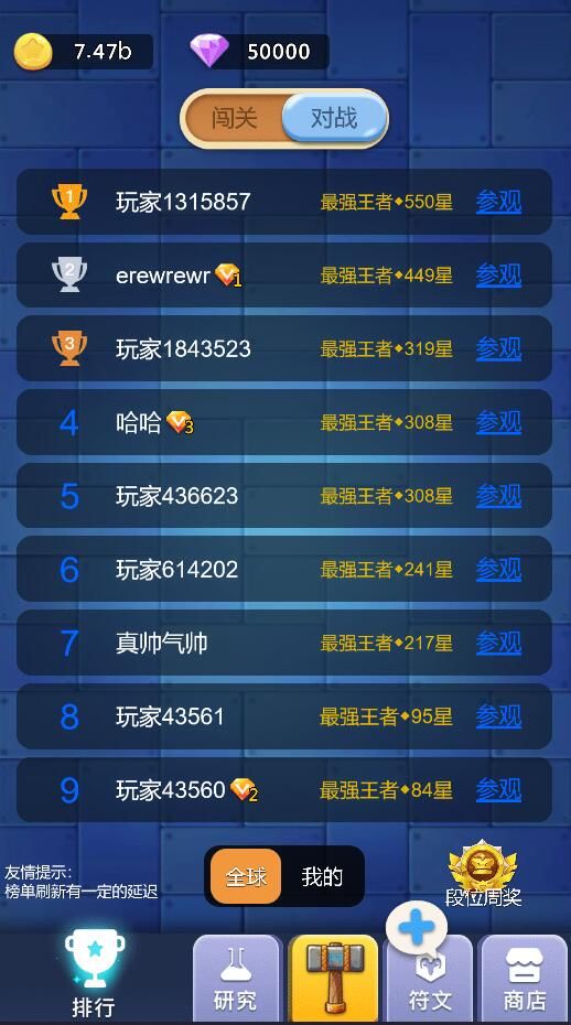 3. 新增全服对战排行榜,每周根据排名结算奖励。