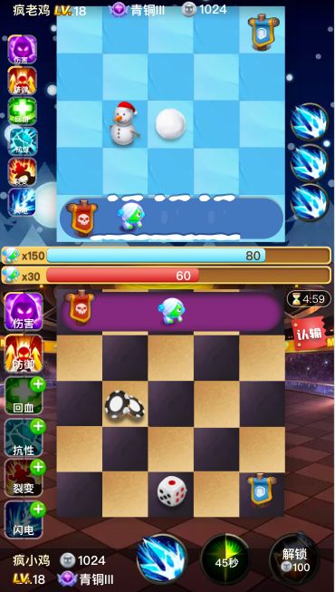 卡卡保皇最新PVP玩法采用1V1竞技规则,玩法轻松,游戏节奏5分钟一局,输赢基本靠对炮台、阵型、技能的理解以及对战策略,当主关卡达到251关后解锁该玩法。