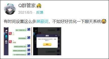 大家可以在本帖子下方的评论区留言告诉我们你遇到过的屏蔽词,或者说试过想要发出哪句话,但是发不出去,提示有屏蔽词,但你们觉得这句话或这个词是没问题的,都可以告诉我们,我们收集后会尽快给到策划小哥那边,让他们去评估并选择一些可解除的去解除。