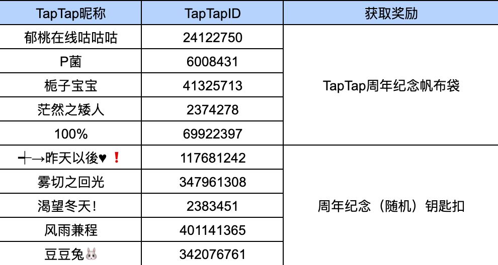 5个TapTap周年纪念帆布袋/5个周年纪念(随机)钥匙扣,欢迎参加哦!