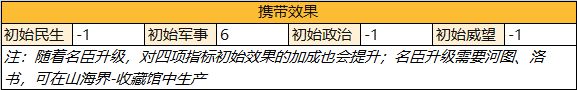 注:获得装备后,可降低游戏局内升级该名臣的政策所需的钱粮消耗。