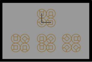 图案三:钱币2顺时针旋转45°到钱币3(90°—135°) 依次连接形成1
