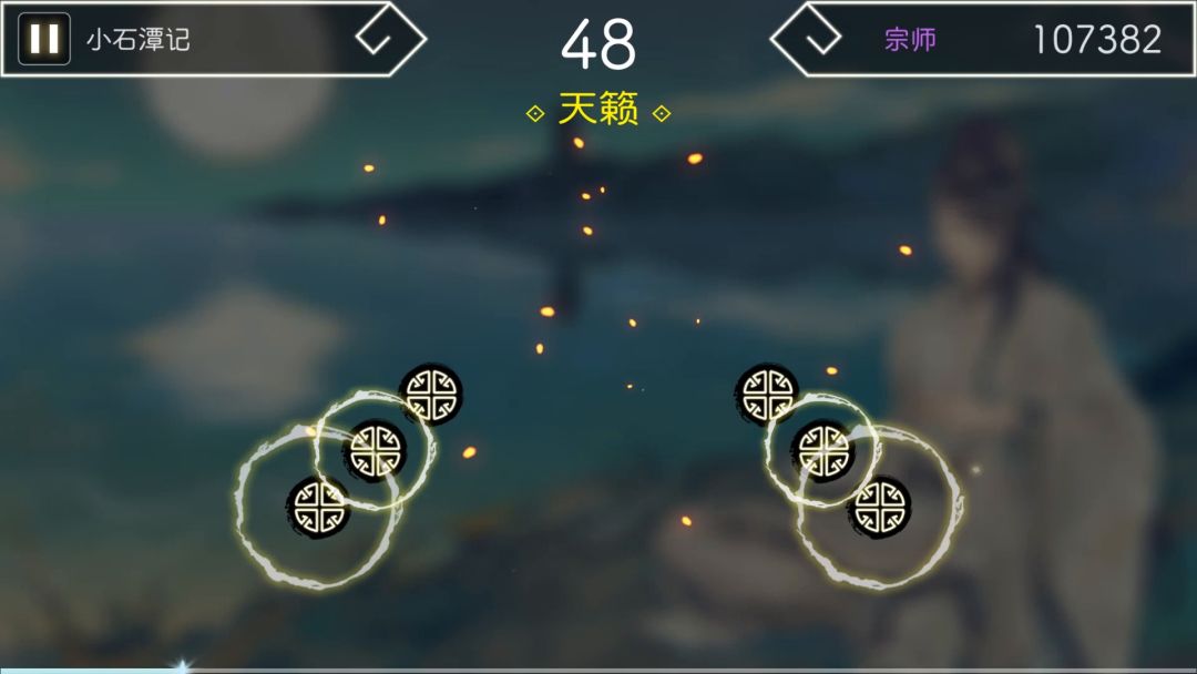 而这首歌曲的谱面,运用了较多的拖曳与滑动交互,想要展现出小石潭里波光粼粼的场景,不得不说的是,滑动交互那一块,是小红永远的痛,note一齐出来,完全不知道手该怎么放了QWQ,所以这首歌曲的宗师谱面对于新手来说,还是具备一定难度的。