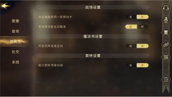 手机端:分的更详细一些,有“是否开启伙伴语音互动”、“跳过禁林动画”的设置。