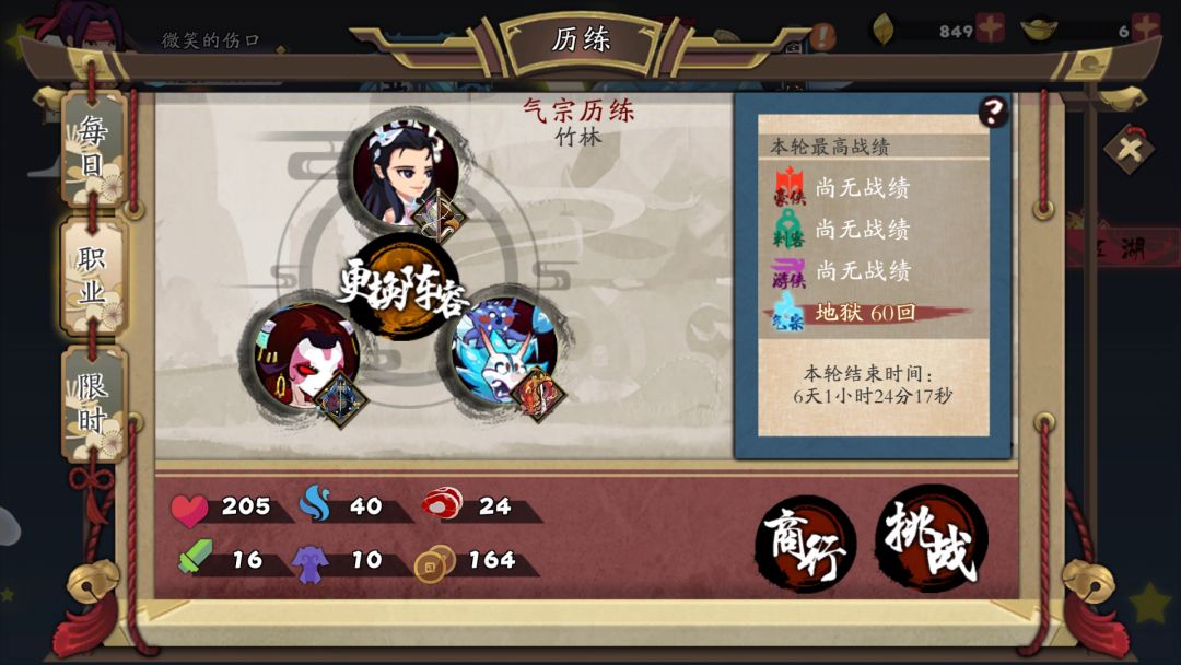 1、进入历练开把木剑,前几个事件遇上山洞,升级木剑出(打出本回合造成的100%伤害)这个磁条。