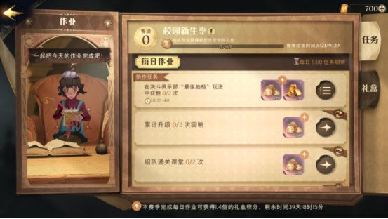完成每日作业,每天完成5个任务可以获得额外奖励,升级礼包等级可以领图书馆通行证、宝石、金币等奖励!