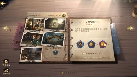 完成各个学年剧情,可获得金币、宝石、图书馆通行证以及特殊的卡牌奖励!了解本游戏的主要剧情、特别事件,可锻炼、熟悉游戏玩法,跟着剧情走就可完成。