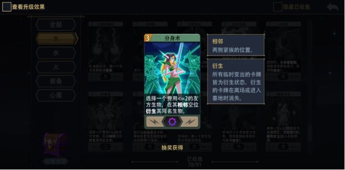 首先着眼于枯木长老的自身技能,只要是衍生物就能获得其提供的buff,那么我们就应该尽量使用【衍生物】来作为我们卡组的主要输出手段,在这套卡组中,【花开并蒂】【进化】都可以主动制造高费的衍生物,木系英雄本身就拥有三种可以在战斗开始就直接召唤上场的衍生物道具,而【变异蜂群】和【圣光战锤】则可以进一步buff场上的衍生物们,为透骨所需要的最重要属性【攻击力】添砖加瓦。