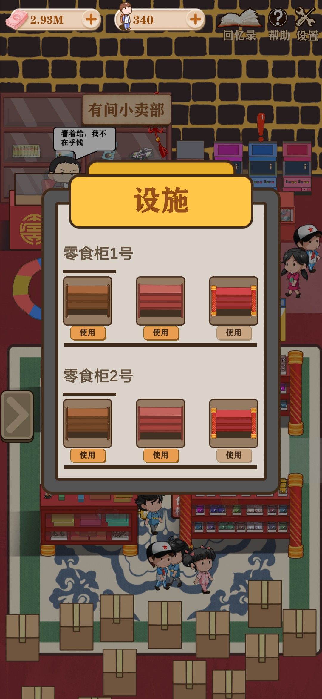 人气开局只有10,你多攒点钱,攒到最少25000金币,然后开魔盒,开到好东西了就能升级人气,比如开到街机,棉花机什么的就能有人气了。还有一种,也是开魔盒来到贵的商品,比如玩具类的铁皮青蛙,冰淇淋类的大脚丫雪糕,零食类的烟糖和白兔奶糖之类的。开盲盒开出这些东西然后上架商店卖,卖出的金币在设施里升级零食柜冰柜前台墙面等等,这些就能升人气。我把下图的这些升级完了然后人气就有340了,人气就满了。设施里的烤肠机这些要开盲盒才能有,开出来了也增加人气。对了,游戏里只能在线获取金币,要是离线就获取不了