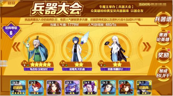 指挥官挑选英雄加入助阵队伍,收获人气解锁兵器;