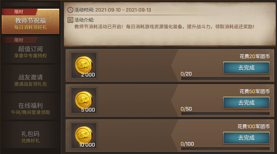 学贵得师,亦贵得友。教师节到了,一声诚挚的祝福,一份珍贵的礼物以表达我们的感谢之情。购买军团礼包,为你的战友送上一份节日祝福吧~