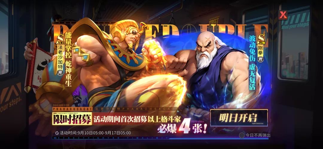 9月10日,《街霸:对决》即将开启全新格斗家S天王法老沙加特限时招募活动,刚拳限时返场活动也将同步上线!