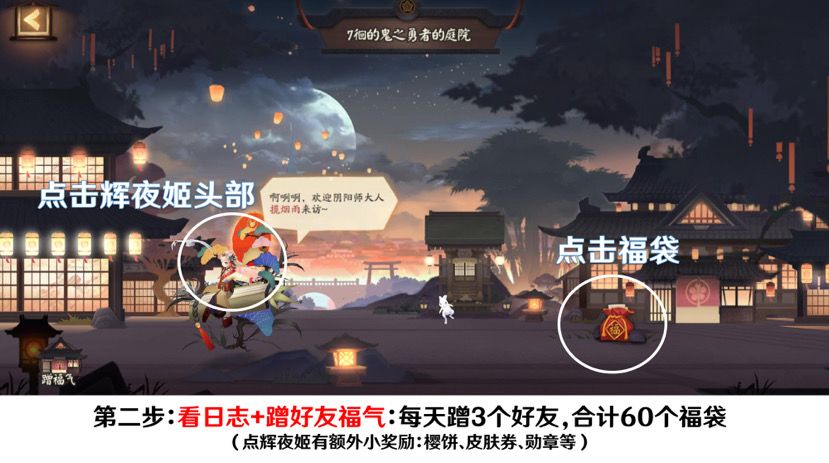 每日流程👉签到,看日志,蹭福气,简单战斗,捐材料,领奖励。
