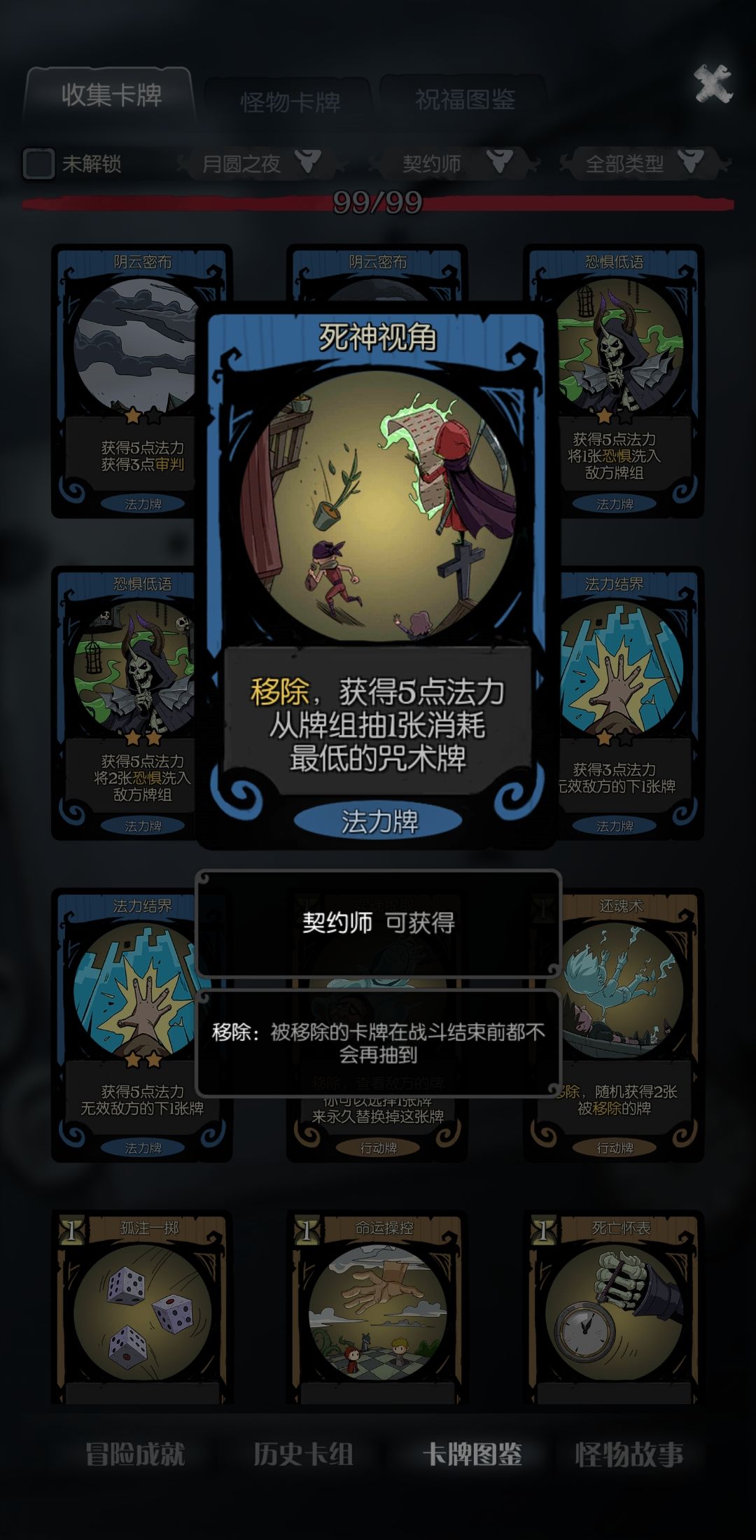 先说精简卡组的问题,无论是汲取流还是恐惧流,初始卡组都可以尽量删光,先删1点攻击,再删3费审判牌,再删初始装备和其他攻击和法力牌,死亡收割和引魂术最后删,这俩可以帮助你前期过渡。总的来说,如果你没有拿到两个以上强力过牌,就要保证通关卡组在20张左右或者以下。