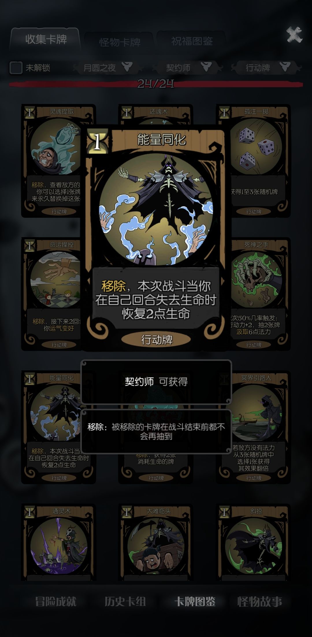 再说汲取流,强烈建议开局刷出暗影之泉(每当你使用一张牌,获得2点生命上限),这会让你通关难度少一半以上。
