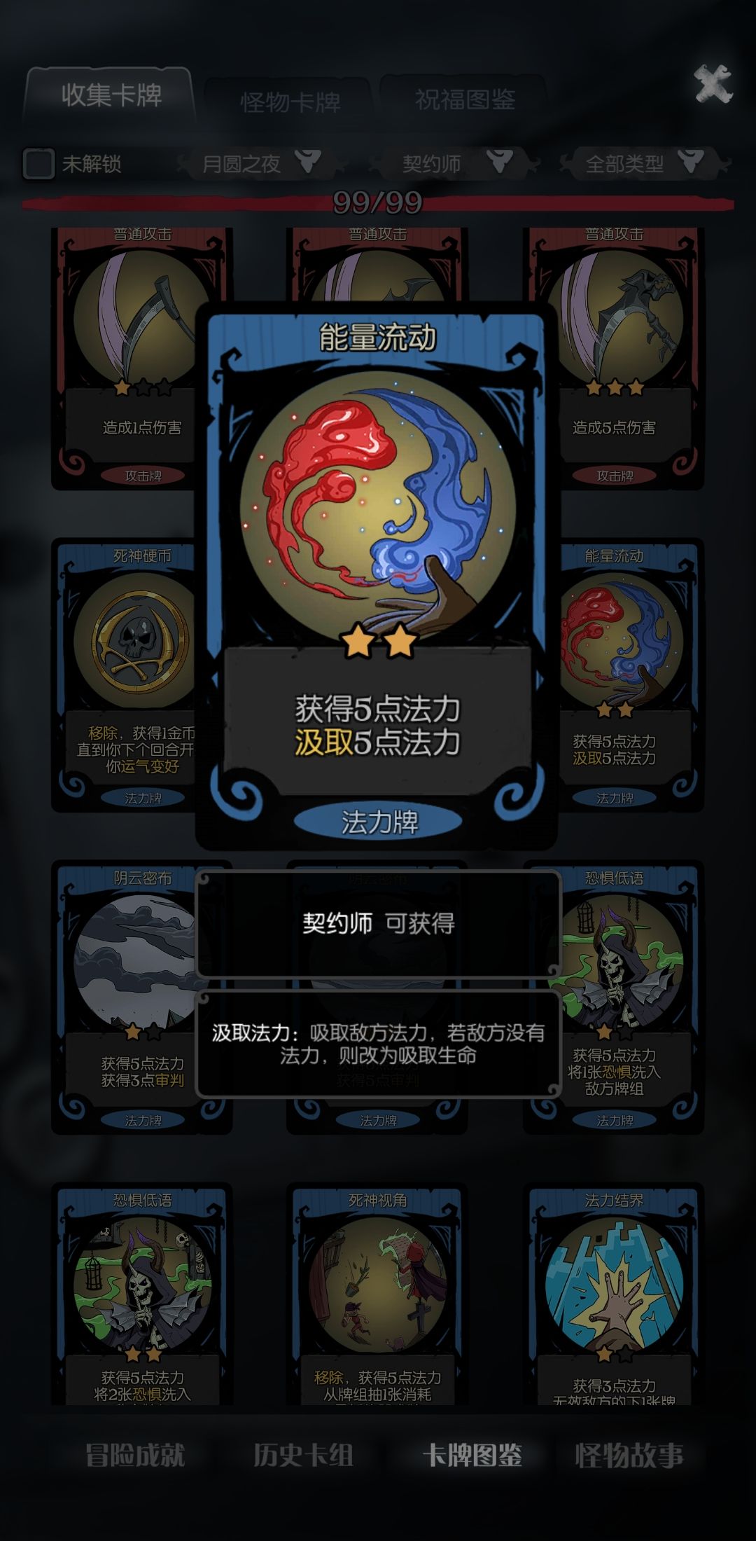 法力牌那这俩就足够了!能量流动只拿一张,建议必拿,因为契约师的法力牌非常少,死神视角这种白嫖卡不用我多说了吧,碰到可以多拿点。