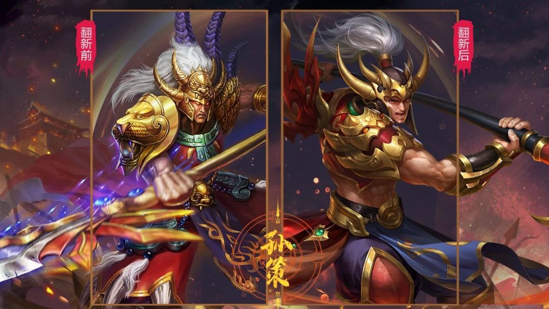 英雄原型前后对比作为江东小霸王的孙策,这次升级可谓是让他愈加的威风,整体盔甲的细节都经过了重新的设计。整体的造型相较于之前更加的简洁,也更加的干练,再加上一手天下无敌的“霸王枪”,更是突显了孙策的称霸江东,誓要带领神族一统天下的气势。