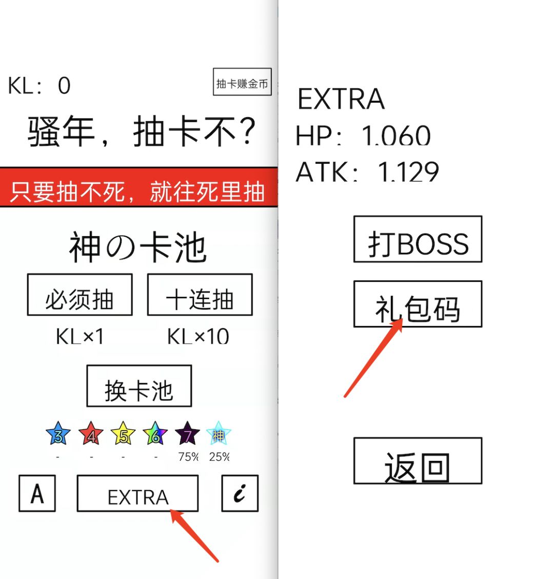 点击 EXTRA,再点击 礼包码,即可兑换