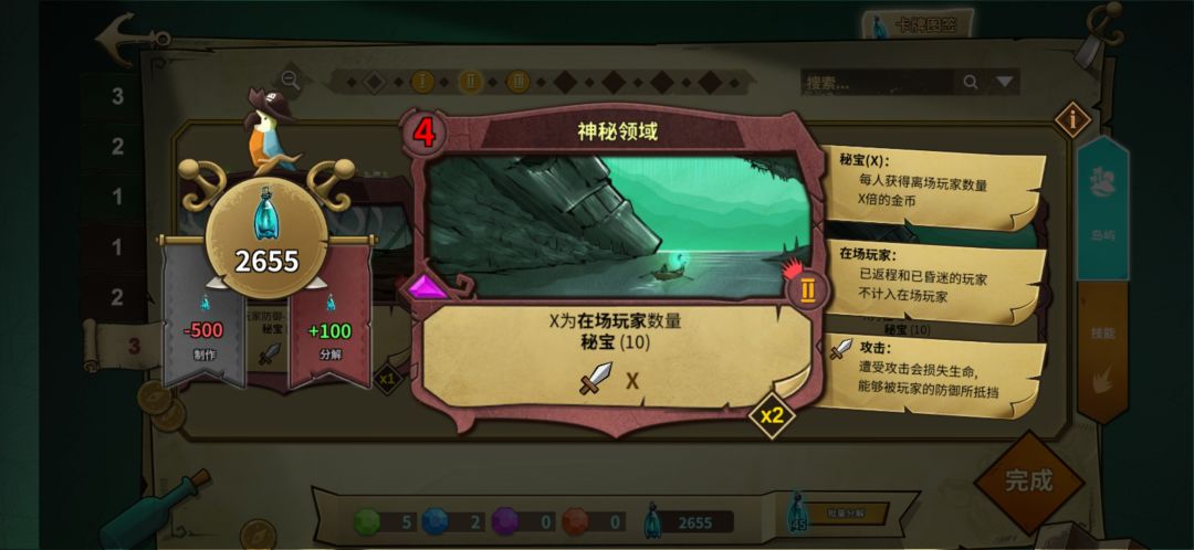 1局游戏中有30个岛屿,平均黑岛4个,红绿各占一半,黑岛分为2类,海啸和地震,伤害从1开始逐渐升高到5,伤害为1,2,3,5。