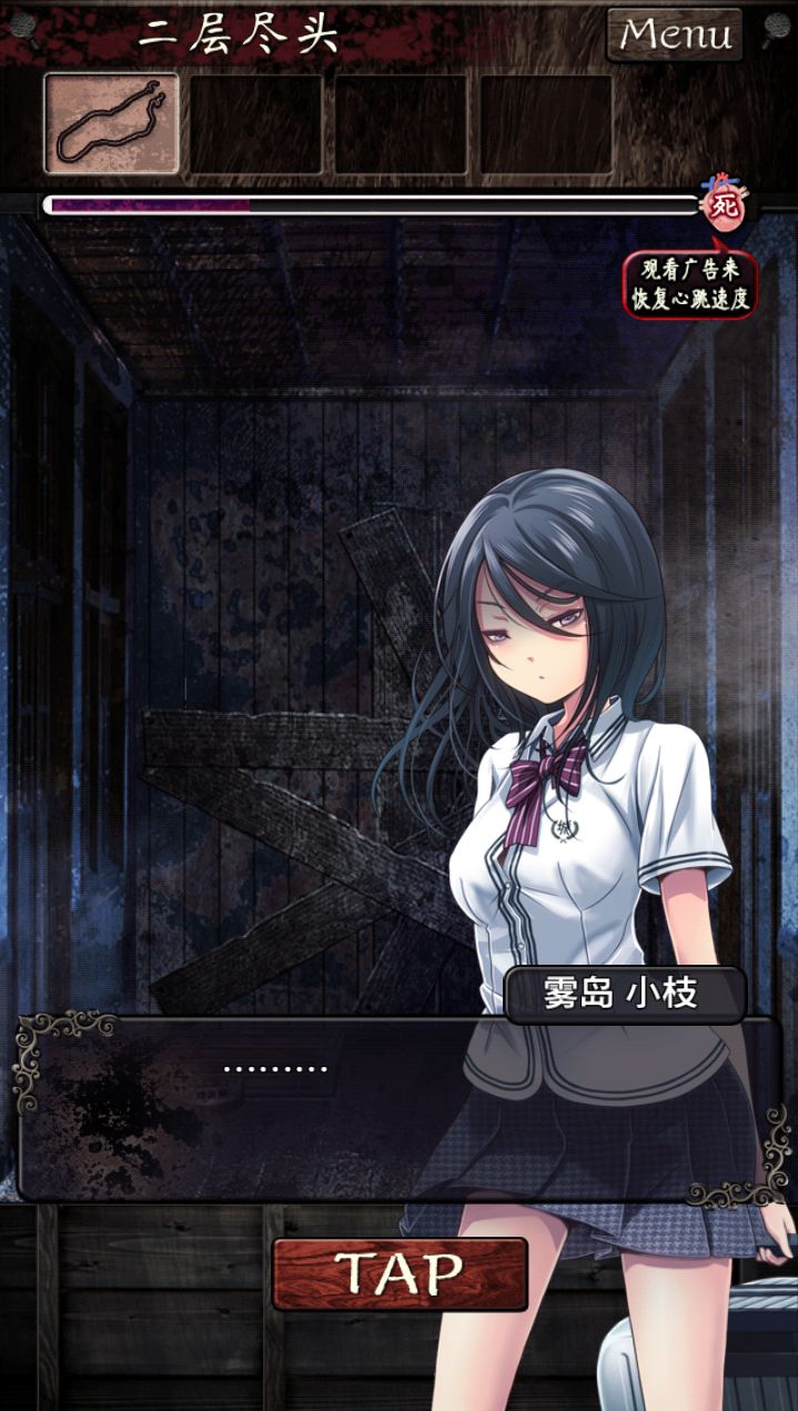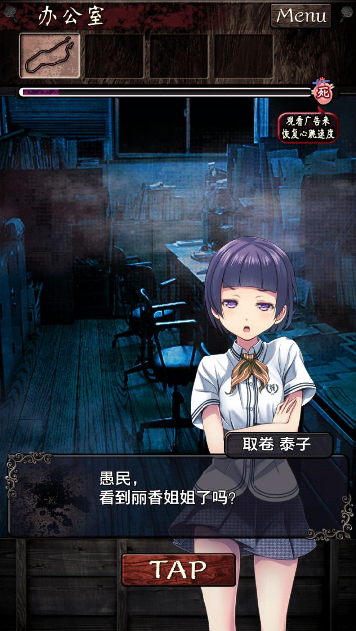 先连TAP跳过对话,然后上楼。到2L理科实验室。点⬅️到二楼走廊,有蟋蟀,莫点。一楼厕所有蜘蛛也莫点,也会上升惊吓值。