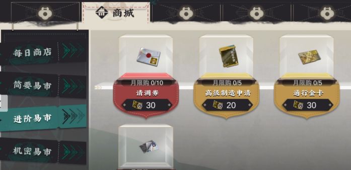 致知仅需要两个材料其中一个即可,一个是对应角色徽章,或者同行金卡。角色徽章可以通过招集,获得重复角色获得。金卡则需要在易物所-进阶易市内兑换,目前只能兑换5张。