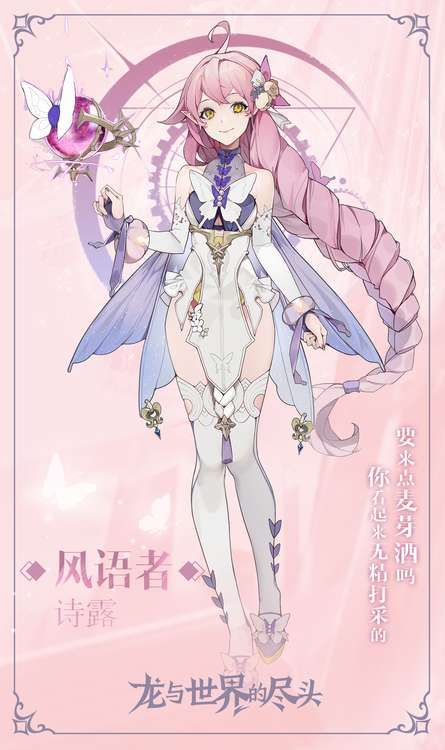 诗露小姐真是温柔可靠的人。高雅端庄,知识渊博,好奇心旺盛而又极具亲和力。喜欢编织,拥有与植物交流、倾听风之声的能力。对麦芽酒情有独钟(虽然偶尔会喝醉)