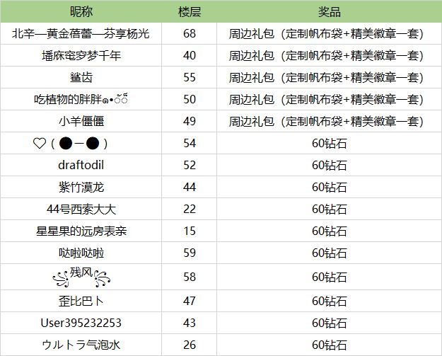 参与活动将有机会获得周边和钻石奖励,期待大家的分享~