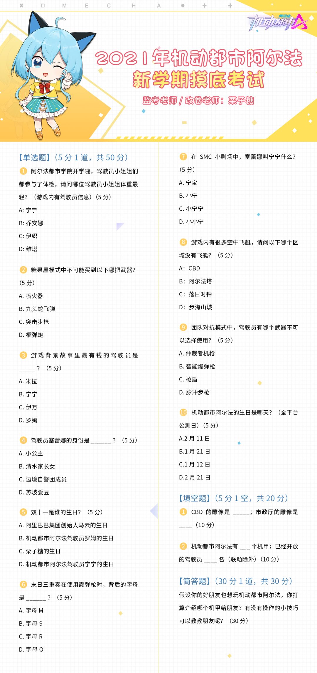 【有奖活动 | 已开奖】《2021年机动都市阿尔法新学期摸底考试》