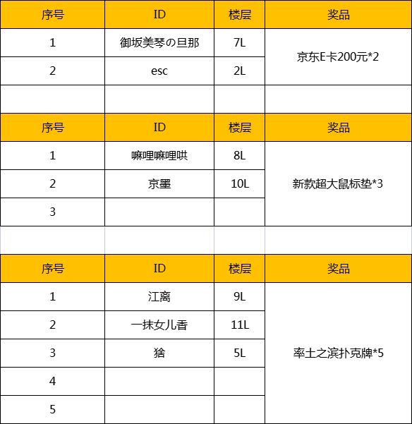 7-8月活动已顺利结束,感谢各位大人的参与,让我们恭喜以下幸运玩家获得奖励!