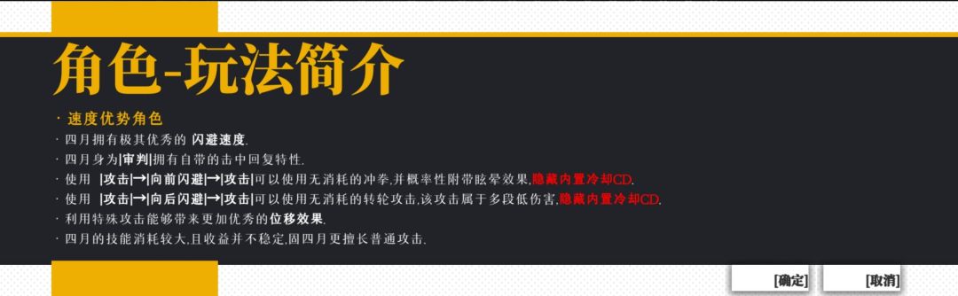 第二,就算你觉得这个流派可以用,也并不一定非要按照我的套路来hhh。在格斗游戏的圈子里面,我们讲究的永远是“思路大于套路”,我想哪怕是pve的动作类游戏也一定是这样。希望我给各位的攻略,能让各位能够学到的是我的“思路”,而不是一味的模仿我的“套路”。并且我不想因为我的攻略而给你们一种“四月就应该这么玩”的感觉hhh,我认为所有人的想法都应该被接纳,并且都是符合你个人特色的。在此,我只是把我的思路,我的特色给分享出来了。对你们有一时的帮助(比如用我这个流派过了关)固然不错,但是我希望你们可以自行考虑,如何去玩四月这个角色,除了我这么玩,还能不能玩出别的花来hhh,这才是真正的帮助到了你们。