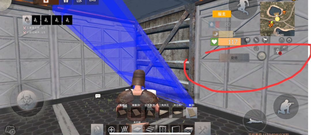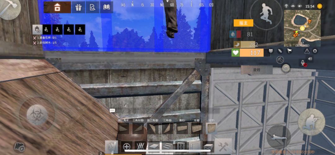 我们可以搭建这样的斜板,来卡楼顶敌人的视野,获得敌人的准确位置