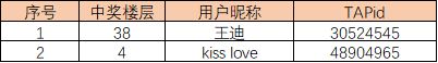 恭喜以下中奖的冒险者!奖品将会通过邮件发放给冒险者,请注意查收哦!