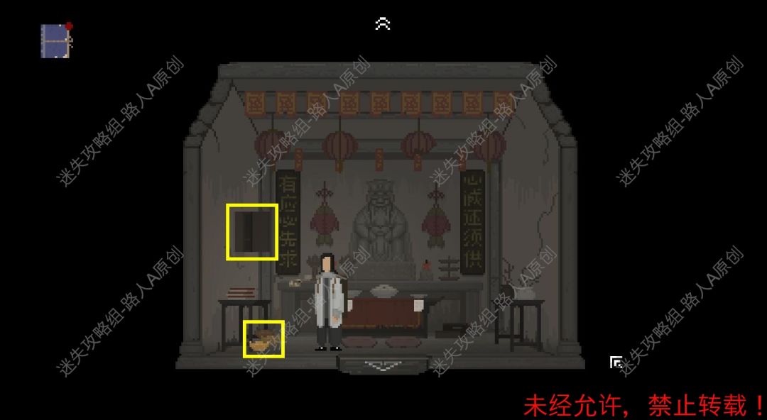 8.进入土地祠,打开左侧墙壁上的柜子,拾取【纸元宝】。8.1