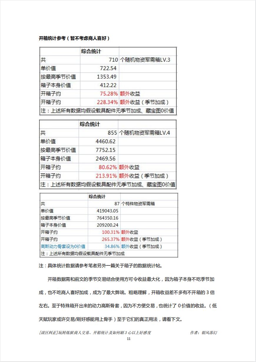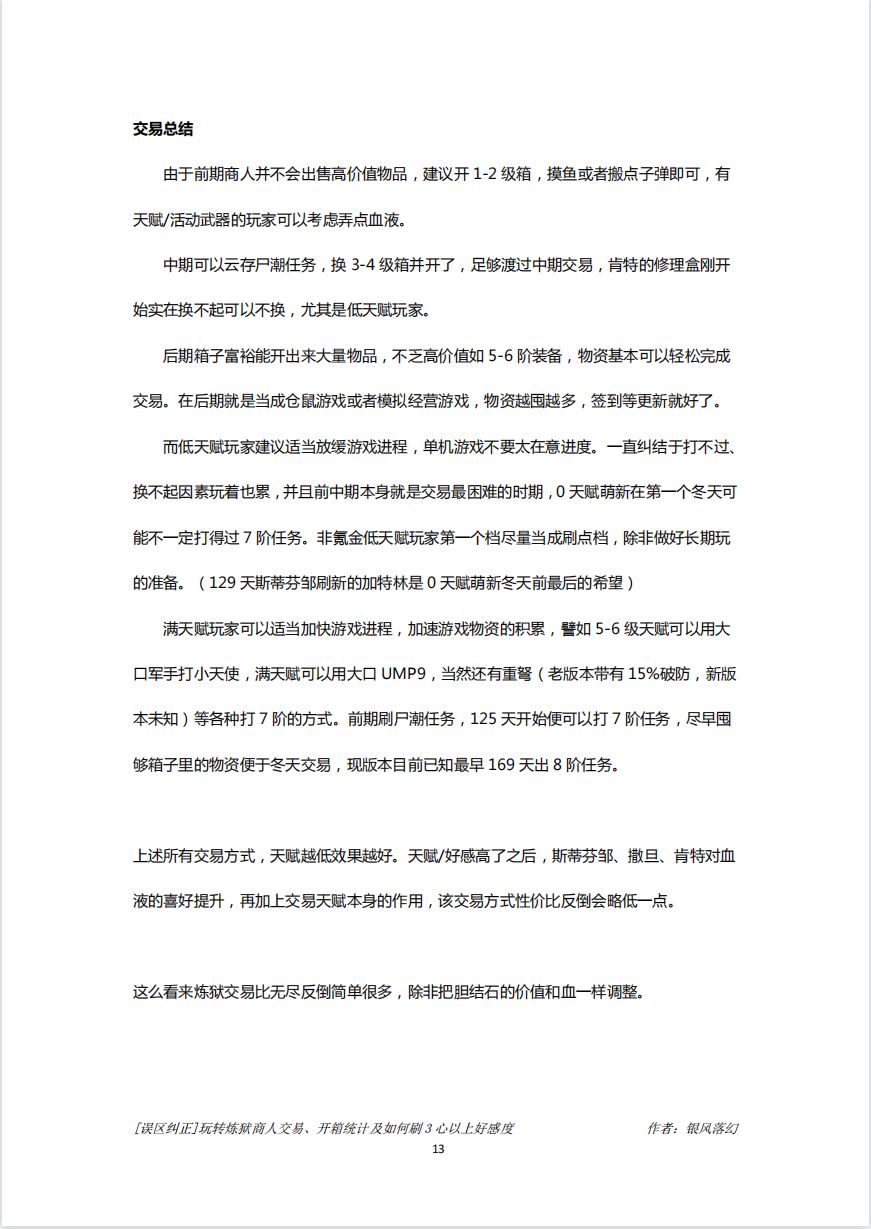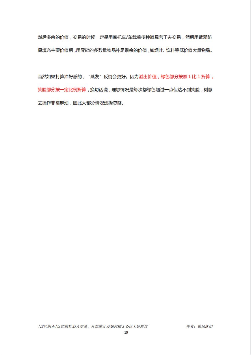 待修正内容:天赋对箱子交易有极高的加成,因此满交易天赋的玩家完全可以用箱子交易取代开箱,这两者性价比相差不大,除非你是真的仓鼠党喜欢囤物资,否则满天赋直接拿箱子交易即可。
